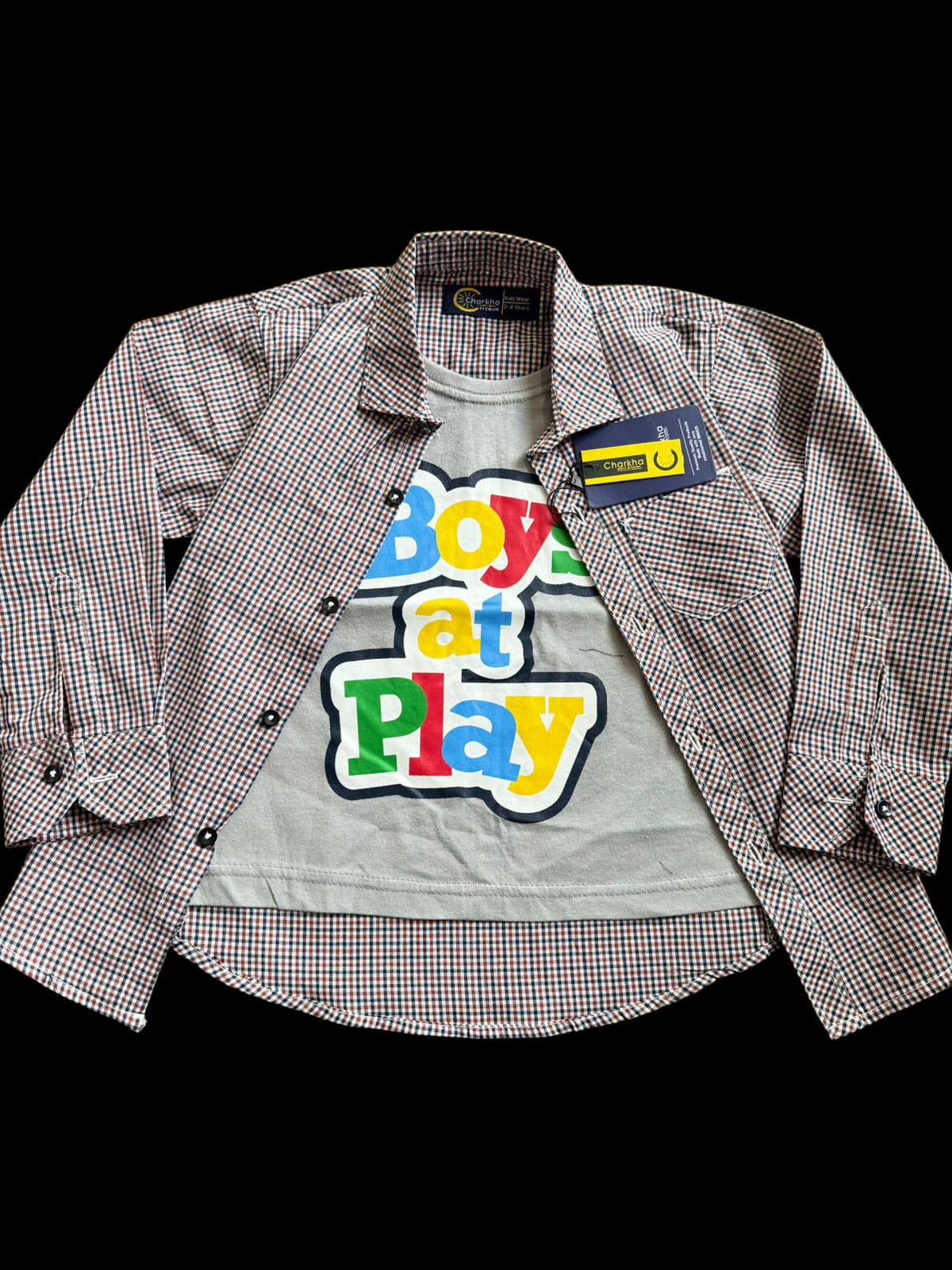 Let your little one play in style with our Boys at Play Double Shirt! Designed for comfort and cool layering, this shirt gives the appearance of two shirts in one — perfect for boys who love to stay active and look effortlessly trendy.