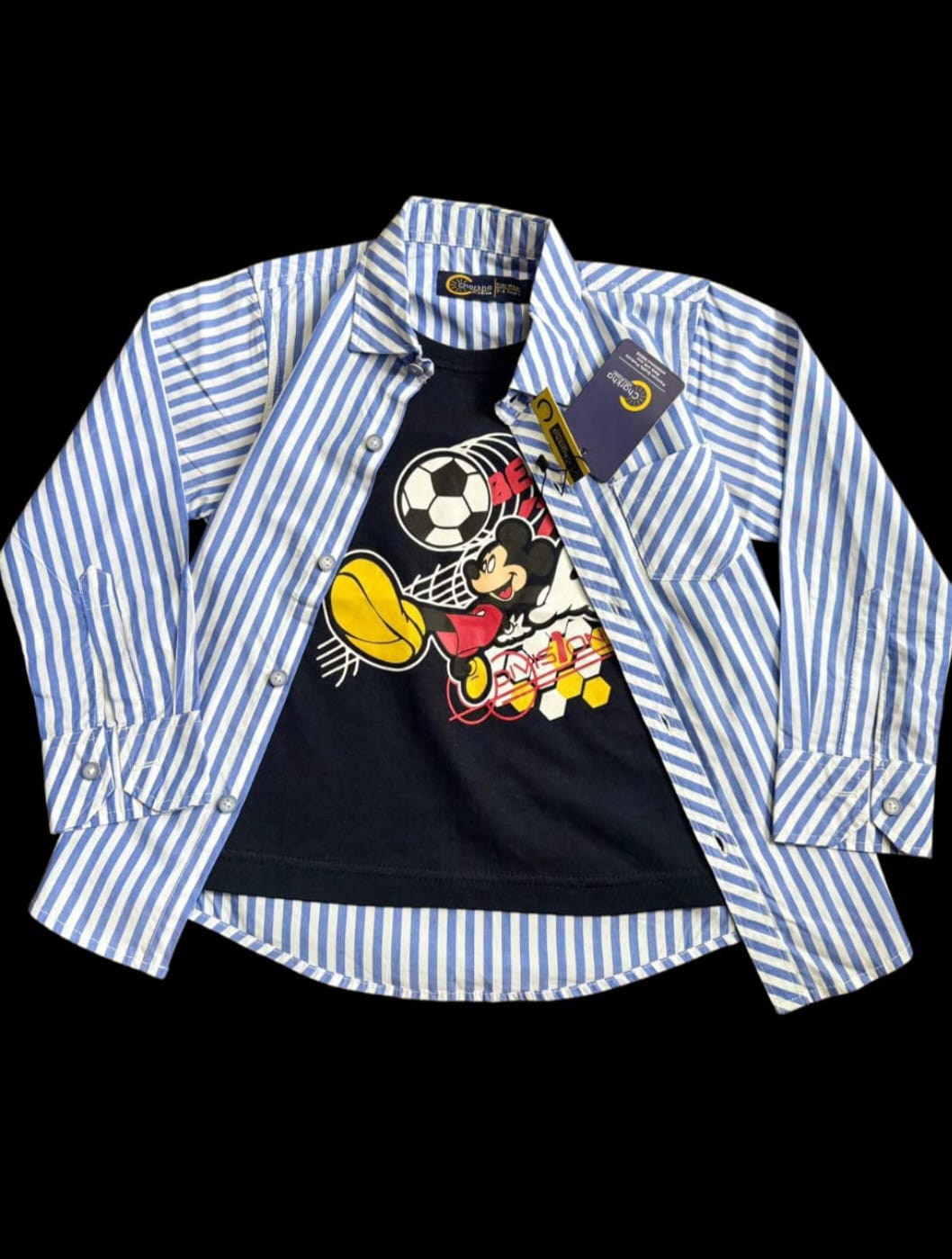 Give your little one a stylish edge with our Boys' Blue Lined Double Layer Shirt, designed for comfort and cool, everyday wear. Featuring a classic blue base with subtle lined patterns, this shirt offers a trendy double-layered look — perfect for school, playdates, or casual outings.
