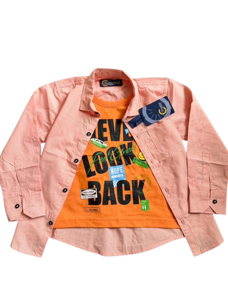 Add a pop of color to your little one’s wardrobe with our vibrant orange double shirts – perfect for boys aged 1 to 12 years. Designed for comfort and style, this trendy two-layer look features a classic button-down shirt over a soft inner tee, giving the appearance of a cool, layered outfit without the bulk.