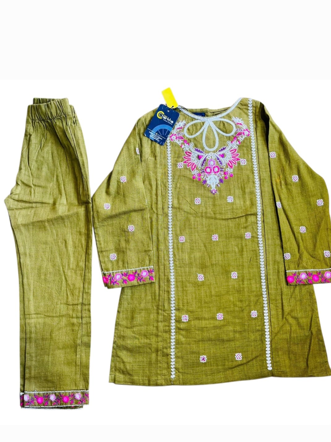 China Khadar Green Trouser & Shirt Set for Girls (Ages 4–14 Years)