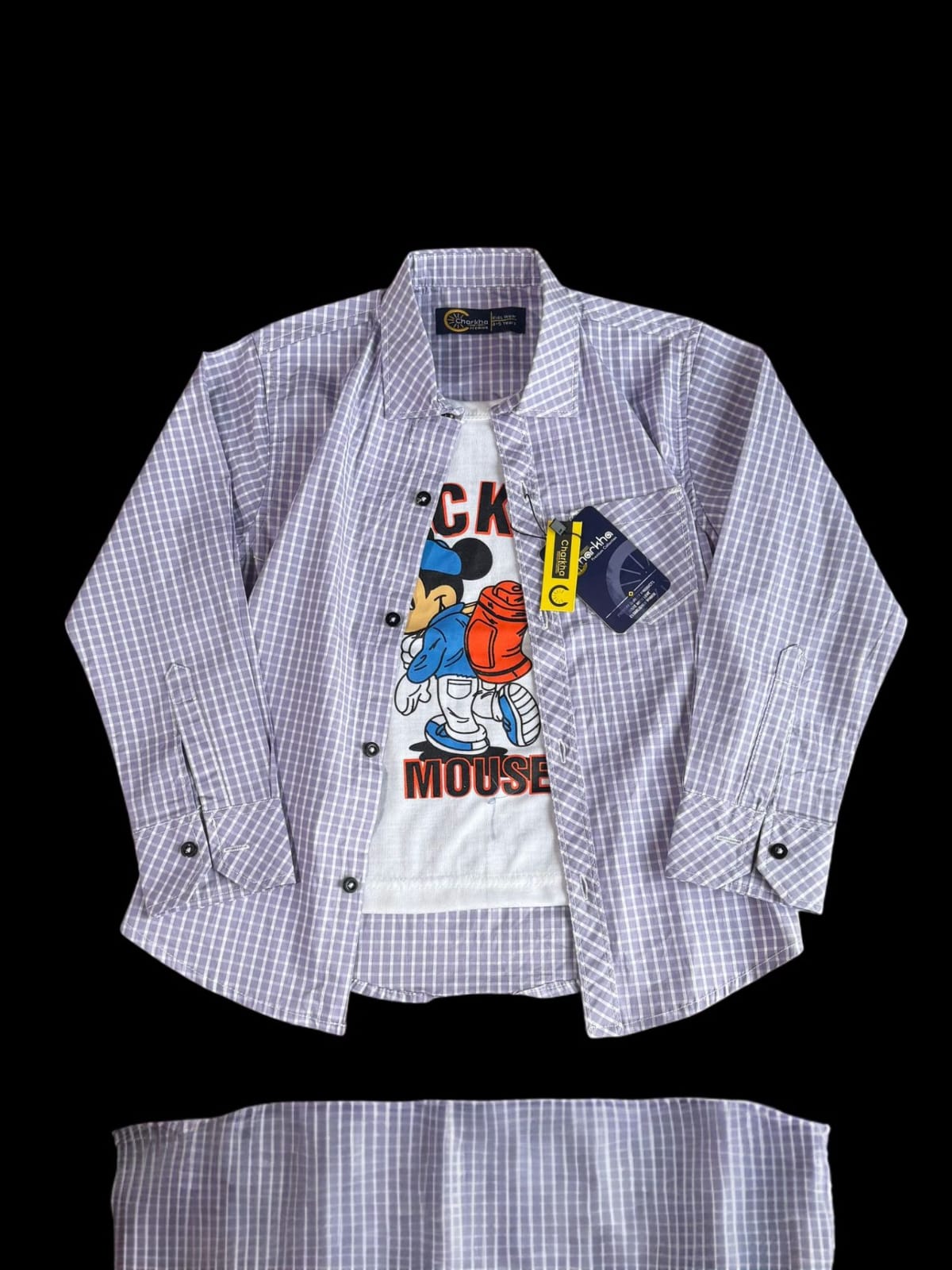 Dress him in effortless style with our Grey Check Double Shirt – a versatile must-have for boys aged 1 to 12 years. Made from soft and durable twill fabric, this shirt features a timeless grey check pattern and a layered double-shirt look that blends comfort with cool. Perfect for family outings, school events, or casual days, it's the ideal mix of smart and stylish.