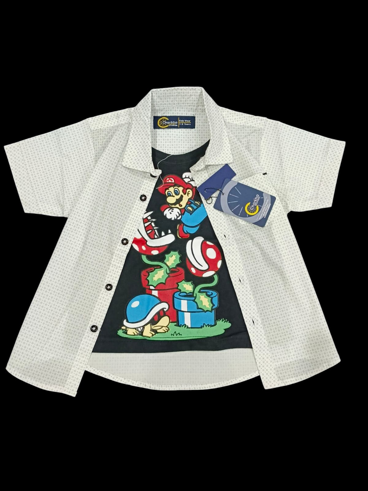 Channel retro nostalgia with this Mario Black & White Cotton Double Shirt, featuring a bold layered graphic of gaming’s most iconic hero in striking high-contrast tones. Perfect for Nintendo fans who love minimalist streetwear with a playful twist.