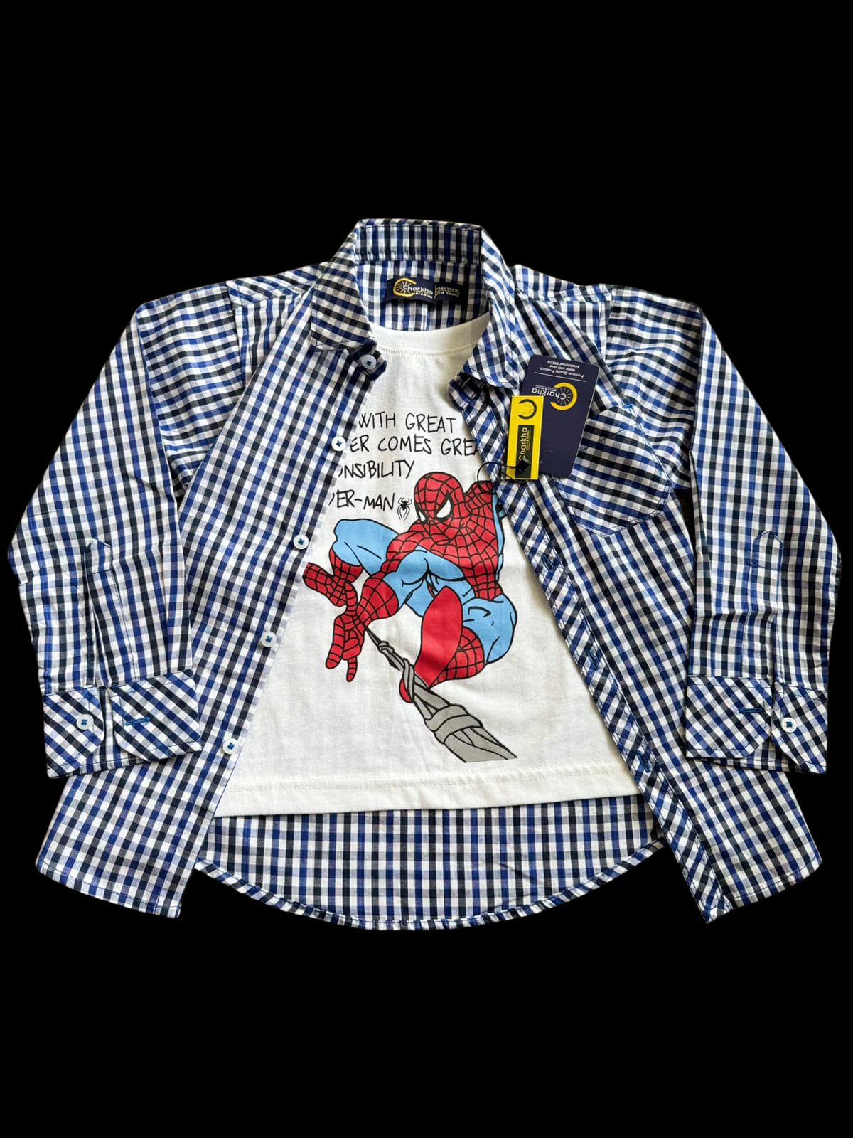 Unleash your boy’s inner superhero with this stylish Spider-Man Black and White Double-Layered Shirt. Featuring a bold monochrome Spider-Man graphic on the front, this shirt combines a cool comic book look with everyday comfort. Designed with a layered effect, it gives the illusion of two shirts in one — a short sleeve over a long sleeve — making it perfect for year-round wear.