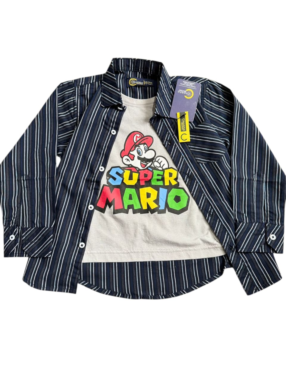 Super Mario Blue Lined Double Shirts for Boys (Ages 1–12)